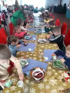 Dzieci wesoło bawiły się ze św. Mikołajem oraz jego pomocnikami. Wrażeń i emocji było bardzo wiele, bo przecież mikołajki to jeden z najradośniejszych dni w roku. To był wspaniały, magiczny oraz pełen radości dzień.