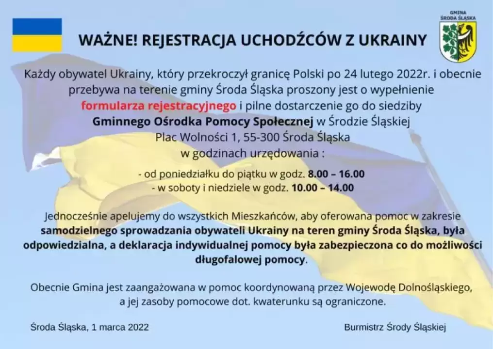 WAŻNE! Rejestracja uchodźców z Ukrainy