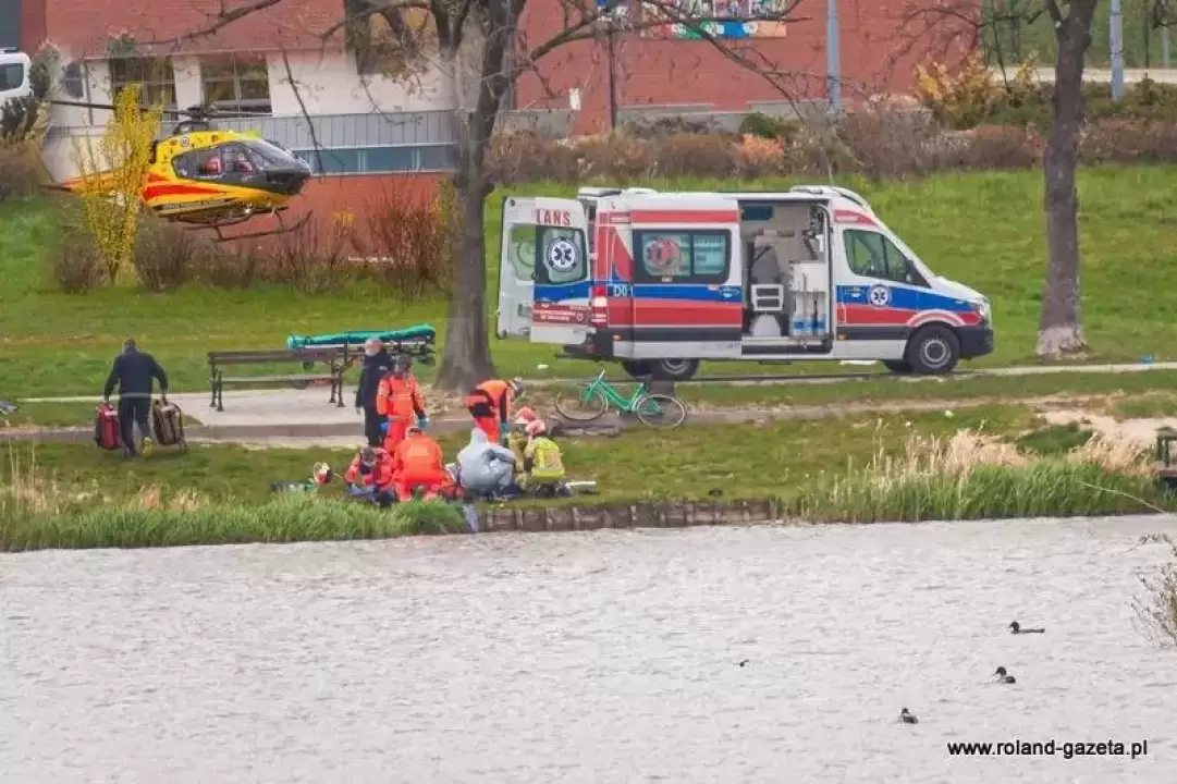 Wędkarz wpadł do wody. Lotnicze pogotowie zabrało go do szpitala