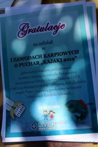 Z dumą podziękowania złożył również prezes Koła Wędkarskiego Sazan Jerzy Durman – Dziękuję za wspaniałą zabawę, miłą atmosferę, ale przede wszystkim za chęć pomocy. Jestem z Was dumny. Z kolei główny organizator Charytatywnych Zawodów Karpiowych Gabriel Hen zapowiedział, że to dopiero początek. Kolejną edycję wędkarze planują zorganizować już we wrześniu.