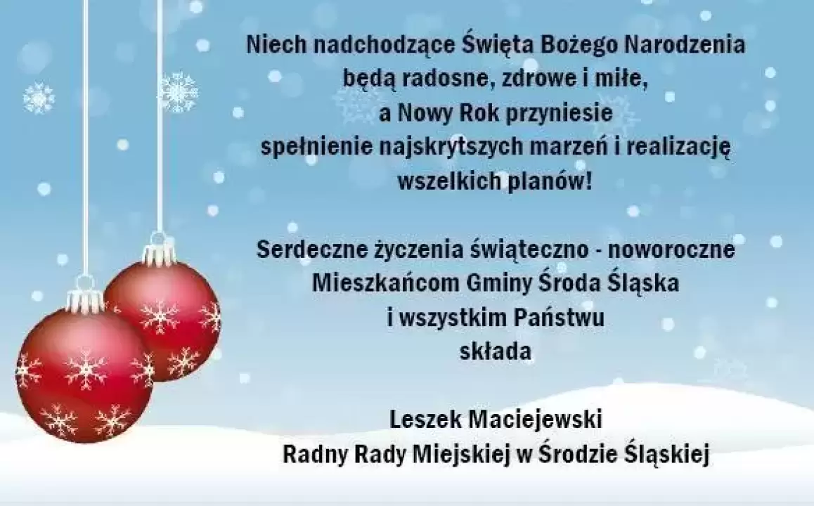 Wesołych Świąt i Szczęśliwego Nowego Roku życzy radny Leszek Maciejewski