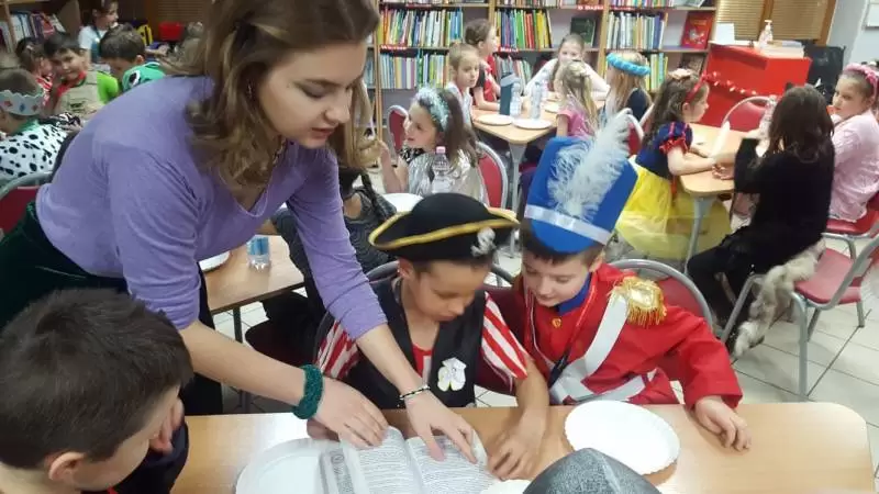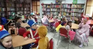 217. rocznicę urodzin świętowało 29 najmłodszych czytelników. W tym roku w bibliotece odbył się uroczysty bal, na którym wszyscy uczestnicy przebrani byli za ulubione postacie z bajek i baśni.