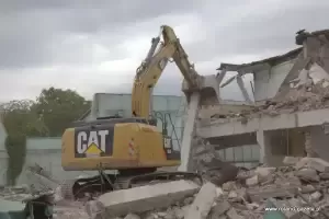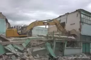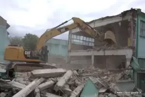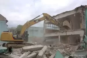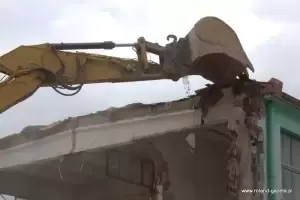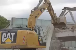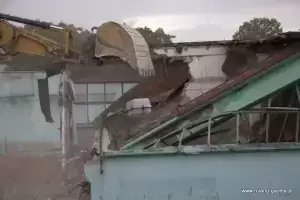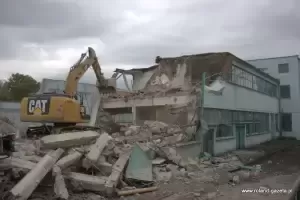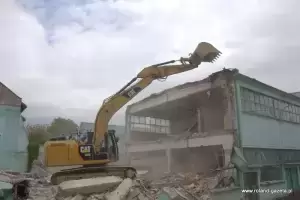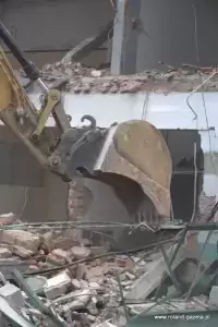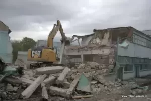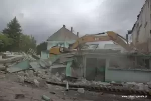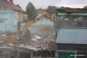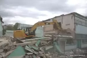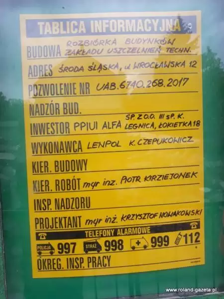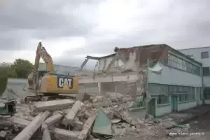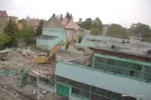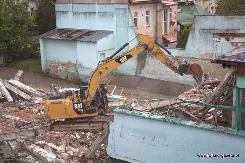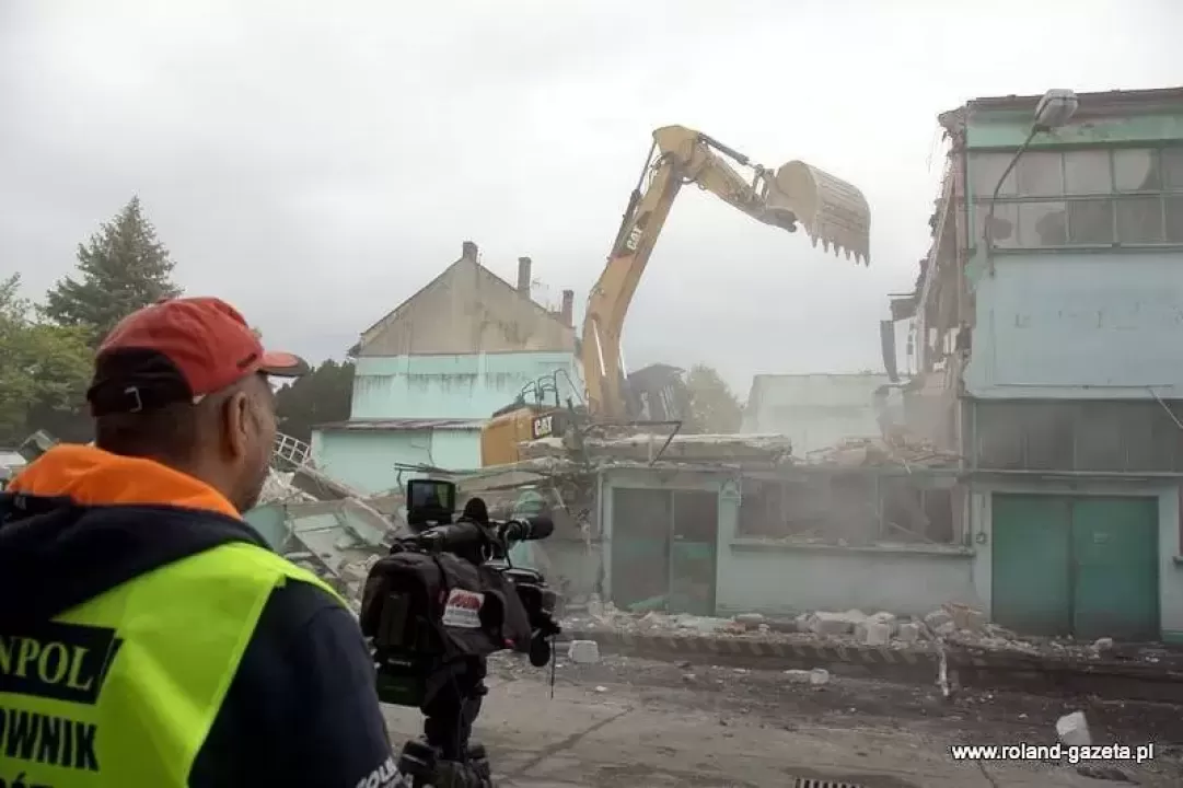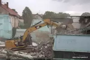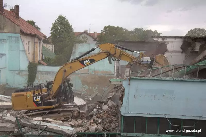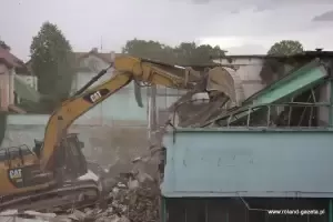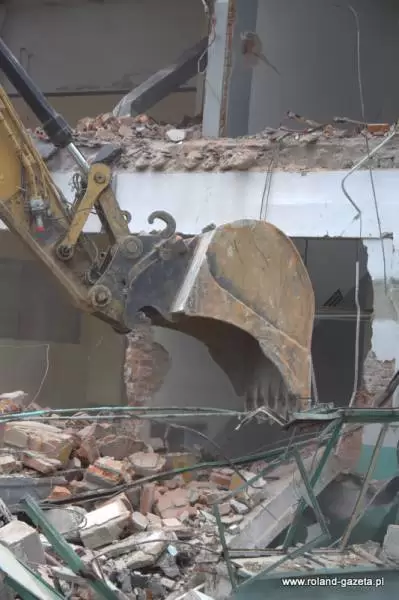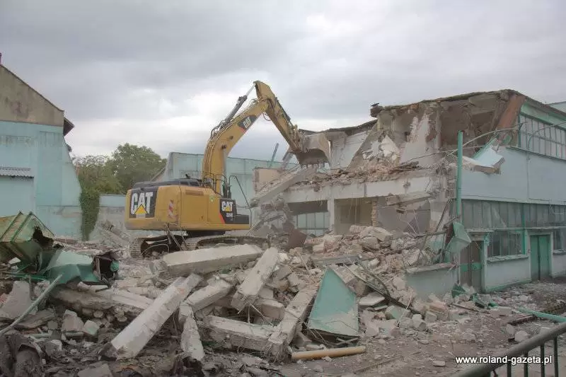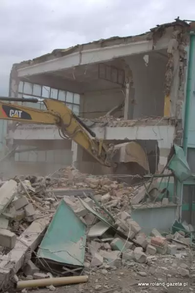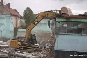 - Firma będzie budowała pawilon handlowy sieci Lidl oraz jeszcze jeden w miejscu przylegającym do boisk sportowych. Natomiast w części najbliżej ul. Wrocławskiej, w dawnym biurowcu będzie wykonany również pawilon handlowy, ale w mniejszej skali z zachowaniem architektury zewnętrznej, bo takie są wymagania konserwatora zabytków - informuje kierownik robót. - Wyburzamy obiekty przemysłowe. To był zakład uszczelnień technicznych jak mieszkańcy Środy Śląskiej wiedzą i te wszystkie obiekty, która spełniały funkcje przemysłowe teraz są likwidowane, z wyjątkiem budynku biurowego. Kolejno trzeba te budynki rozszyfrować tak jak były budowane ich konstrukcje i odpowiednio do procesu budowania burzyć, czyli osłabiać miejsca węzłowe, żeby konstrukcja mogła się osłabiać w sposób zaplanowany i bezpieczny - wyjaśnia P. Kirziejonek. - Problemem jest wysokość niektórych obiektów. Te, które są niższe zostaną wyburzone w pierwszej kolejności. Do obiektu wysokiego zbudujemy rampę najazdową z pozyskanego materiału z hal, by następnie koparka wzniosła się na wysokość 6-7 metrów, aby sięgnąć elementów najwyższych . Natomiast hale przy obiektach sportowych będziemy burzyć metodą tradycyjną, przy użyciu koparki. Kłopotliwą sytuacją jest fakt, że w jedynym z obiektów są złącza średniego napięcia i tę cześć hali musimy rozebrać ręcznie, aby nie spowodować jakiegoś uszkodzenia w pomieszczeniu, w którym złącze się znajduje. Jest to dodatkowe utrudnienie polegające na pracy ręcznej. Wszystkie pozostałe budynki, zgodnie z naszym doświadczeniem firmowym będziemy kolejno kłaść i później rozdzielać materiały nadające się do recyklingu, czyli np. złom oraz gruz betonowy, który będziemy kruszyć na kruszywa. Zostaną one wykorzystane do budowy placów parkingowych, natomiast gruz ceglany do stabilizacji gruntu placów i dróg dojazdowych na tym terenie - wyjaśnia kierownik P. Kirziejonek.