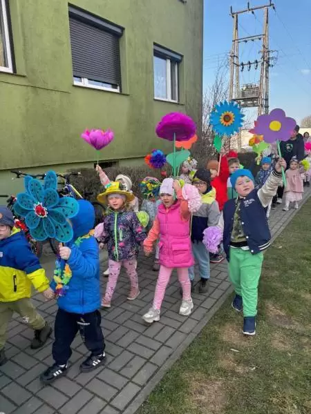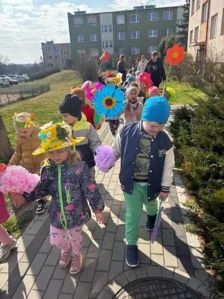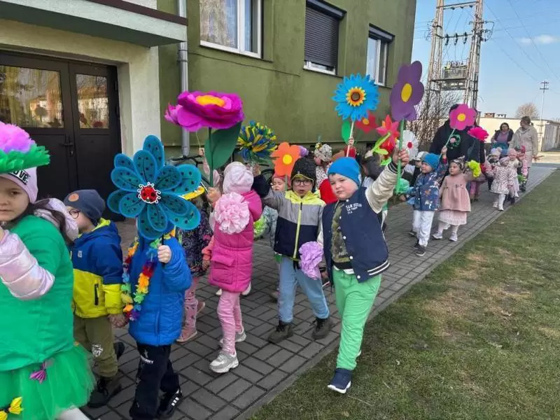 Kolorowy korowód, prowadzony przez dzieci niosące baner z napisem „Witaj Wiosno”, ozdobiony był pięknymi kwiatami, kolorowymi chorągiewkami oraz symboliczną Marzanną – tradycyjną kukłą, która oznacza odejście zimy i powitanie nowej pory roku. Przedszkolaki z wielkim entuzjazmem maszerowały ulicami Ciechowa, śpiewając radosne wiosenne piosenki.