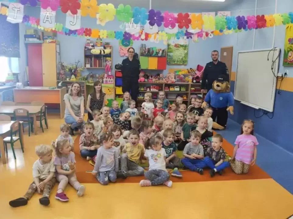 8 maja grupy "Ananaski", "Tygryski", "Grzybki" oraz "Pszczółki" z Przedszkola Publicznego nr 1 odwiedzili funkcjonariusze Komendy Powiatowej Policji w Środzie Śląskiej, aspirant Jakub Burdzy oraz młodszy aspirant Judyta Sowicz. Policjanci przedstawili dzieciom program edukacyjno-informacyjny "Bezpieczeństwo to skarb".