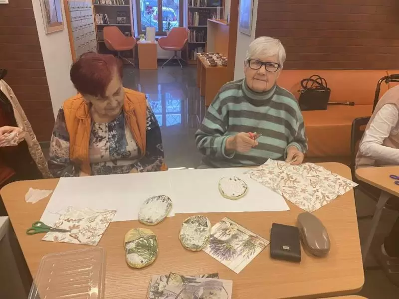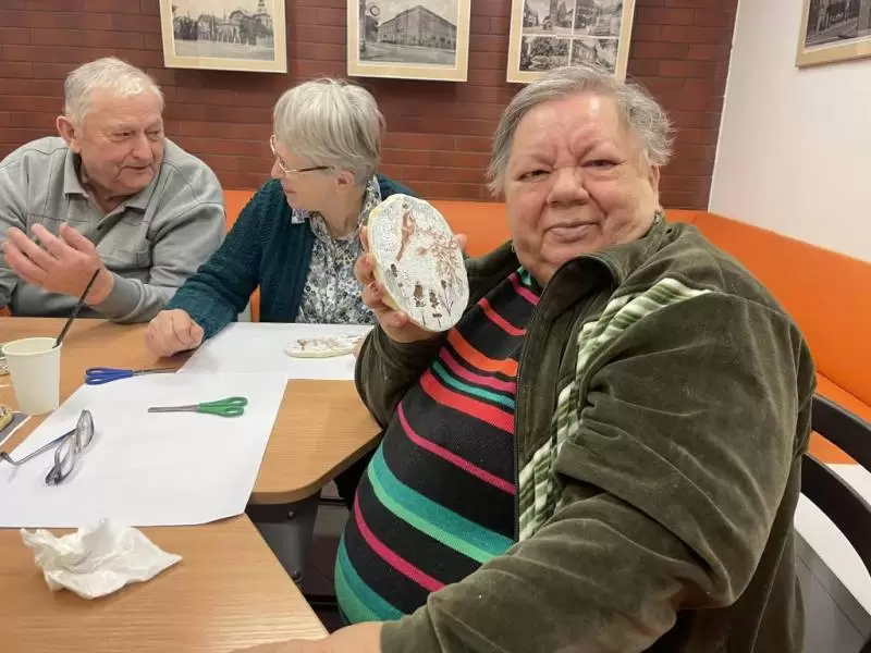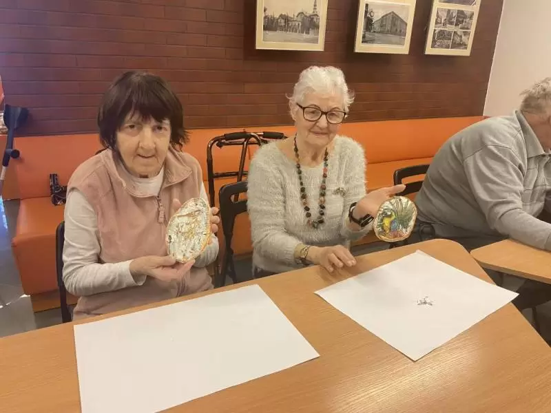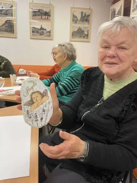 W ramach nawiązanej w ubiegłym roku współpracy seniorzy wraz z kadrą odwiedzili Bibliotekę Publiczną w Środzie Śląskiej na drugie już warsztaty. Tym razem seniorzy ręcznie wykonali piękną ozdobę z gliny zdobioną metodą decoupage wg wcześniej przygotowanego wzoru.
