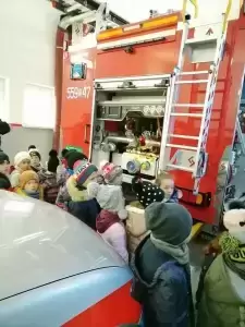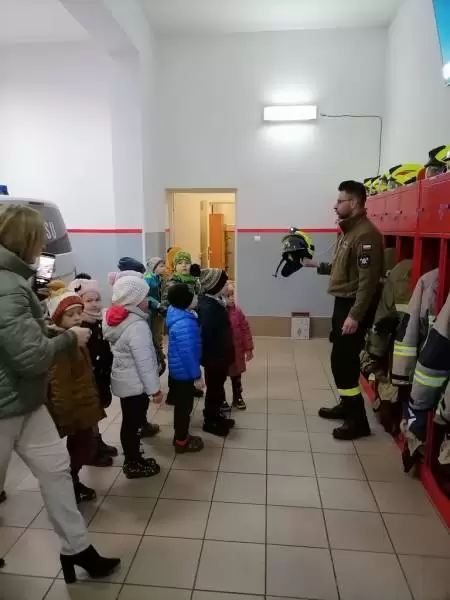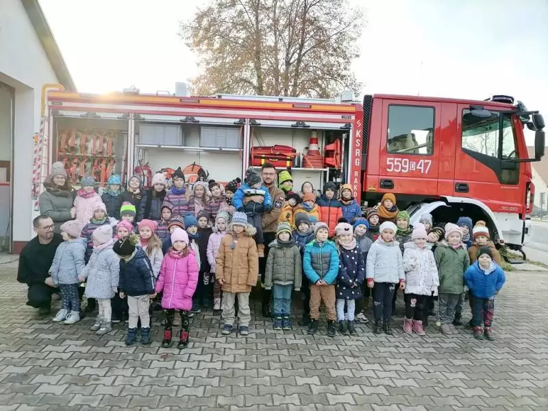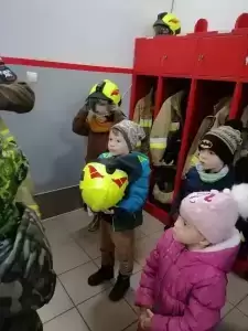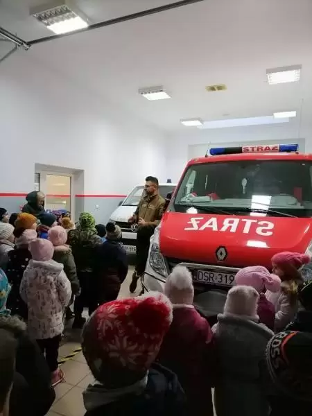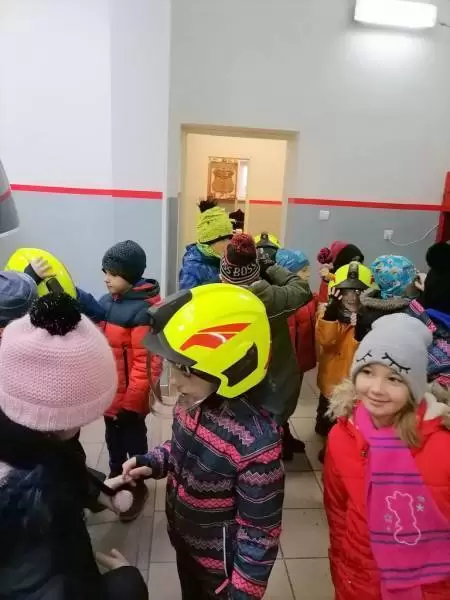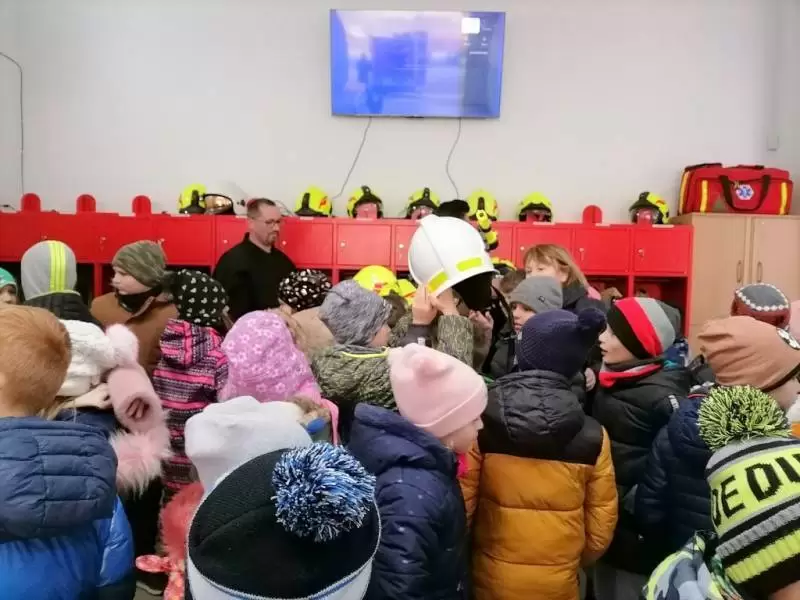 Dzieci dowiedziały się także, w jakich sytuacjach wzywa się straż pożarną, i że strażacy nie tylko gaszą pożary, ale również są wzywani do wypadków drogowych czy usuwania gniazd szerszeni i os. Najmłodsi uczniowie nie dali się zaskoczyć prowadzącym, gdyż świetnie pamiętały, że numer do straży pożarnej to 998 i alarmowy 112. Strażacy pokazali dzieciom sprzęt do udzielania pierwszej pomocy oraz nowo zakupiony wóz strażacki – „karetkę”. Każde dziecko miało możliwość założenia białego hełmu strażackiego. Okazało się, że jest bardzo ciężki, ale ciekawość wzięła górę. Dużą atrakcją było dla dzieci wejście do środka wozu strażackiego.