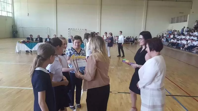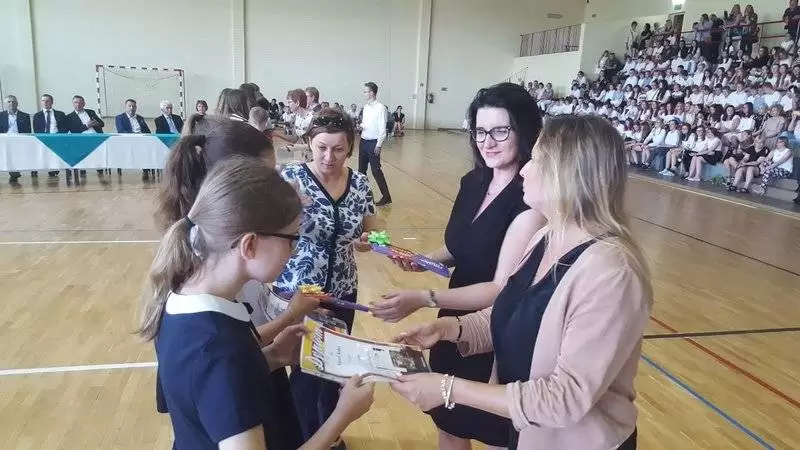 Uczennice otrzymały dyplomy oraz nagrody w formie kart podarunkowych do Empiku. Zostały one wręczone na uroczystym apelu kończącym rok szkolny 2018/2019. Nagrody dla zwycięzców Szkolnego Konkursu Języka Niemieckiego zakupione zostały ze środków finansowych pochodzących z Fundacji ,,Tschammendorf/ Niederschlesien″.