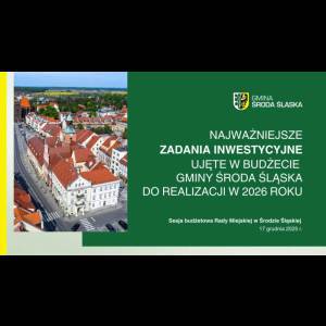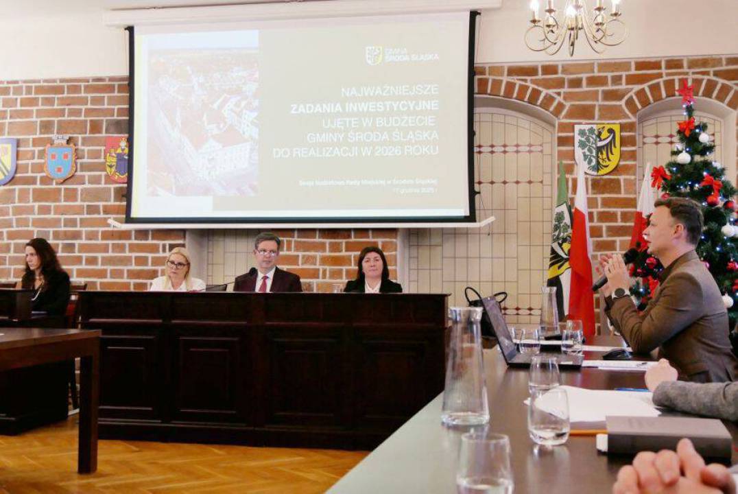 W środę 17 grudnia odbyła się ostatnia w tym roku sesja Rady Miejskiej w Środzie Śląskiej. Najważniejszym punktem obrad były sprawy finansowe. Radni jednogłośnie przyjęli budżet Gminy na 2026 rok oraz uchwalili Wieloletnią Prognozę Finansową na lata 2026-2041.