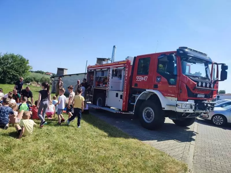 Gościliśmy Ochotniczą Straż Pożarną z Rakoszyc, która urozmaiciła nasz dzień pokazem nowego samochodu, sprzętu. Dzieci świetnie się bawiły, strzelając wodą do celu.