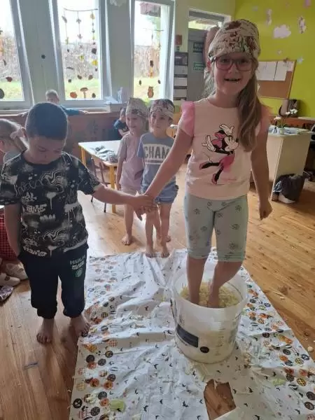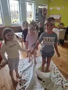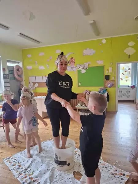 Kiszenie kapusty było wspaniałym przykładem wykorzystania takiej „kuchennej” i praktycznej czynności do przeprowadzenia zajęć sensorycznych dla naszych przedszkolaków. W te prace zaangażowane były wszystkie zmysły dzieci – wzrok, smak, zmysł czucia ciała, zmysł równowagi, zmysł dotyku. Do tego wspaniała zabawa, niesamowita przygoda, zaskakujące zajęcia – tym kiszeniem kapusty dzieci żyły przez cały dzień, a jak nam donoszą rodzice, także w domu z zapałem opowiadały jakie prace wykonywały w naszym przedszkolu.