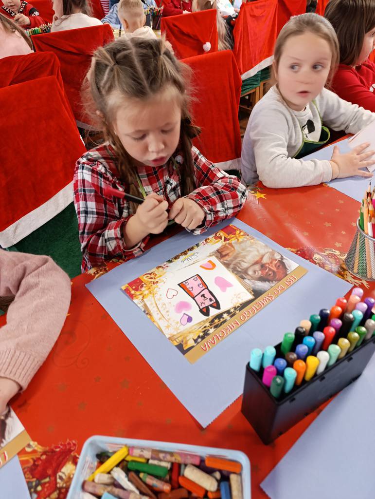 Dekorowana była także świąteczna torebka, do której dzieci spakowały swoje wszystkie wytwory. Podczas spotkania był czas na wspólne zdjęcia, na napisanie listu do Mikołaja oraz wspólny taniec i ćwiczenia ruchowe!
