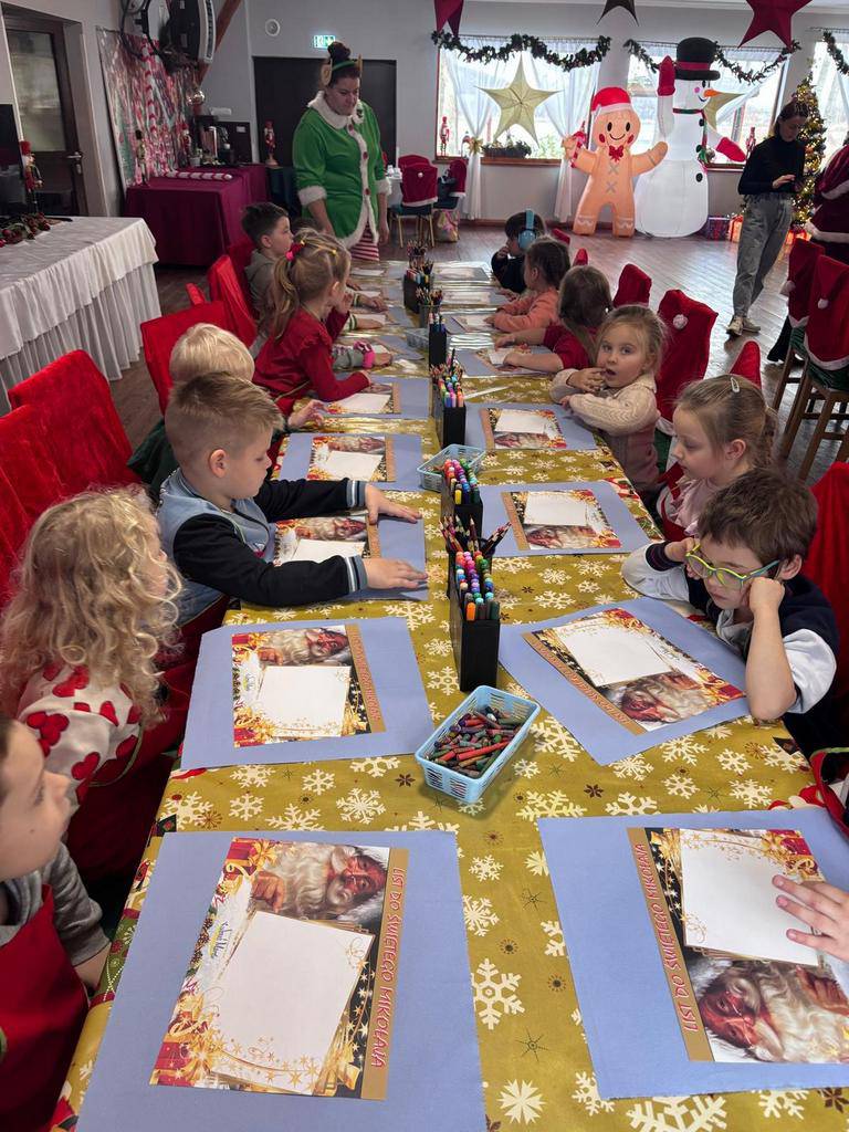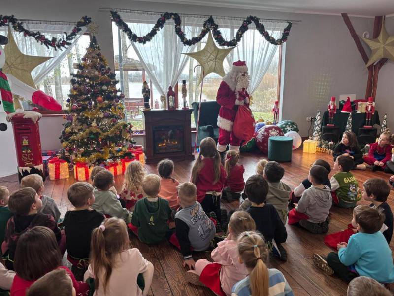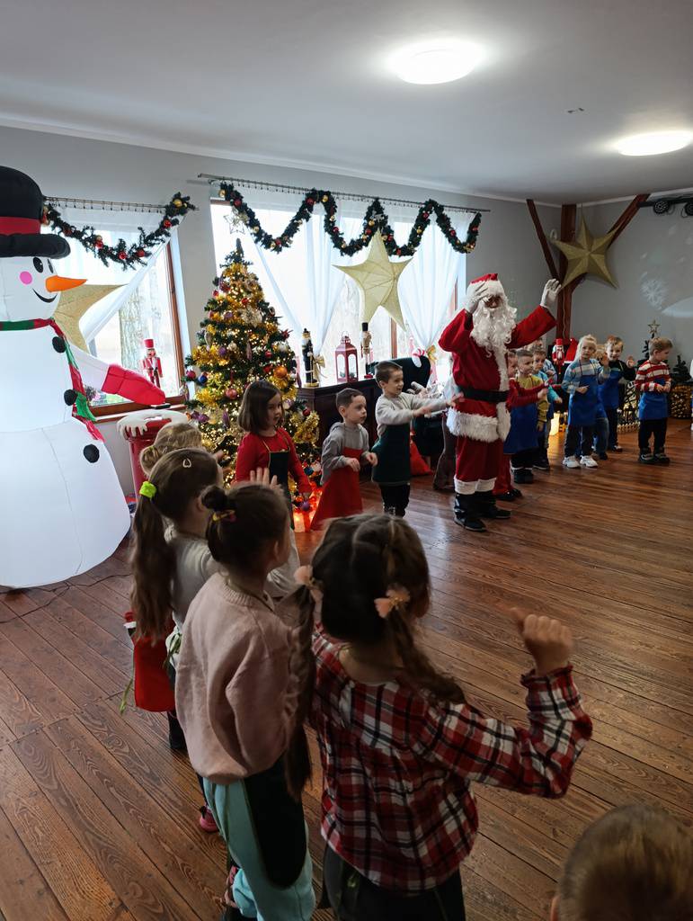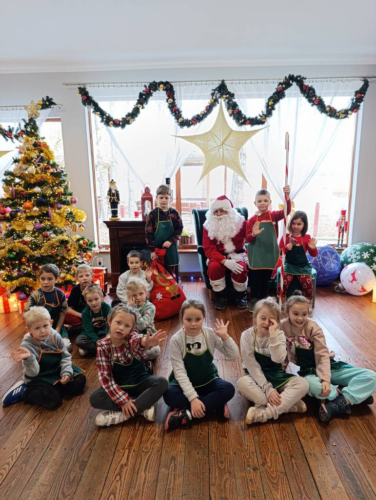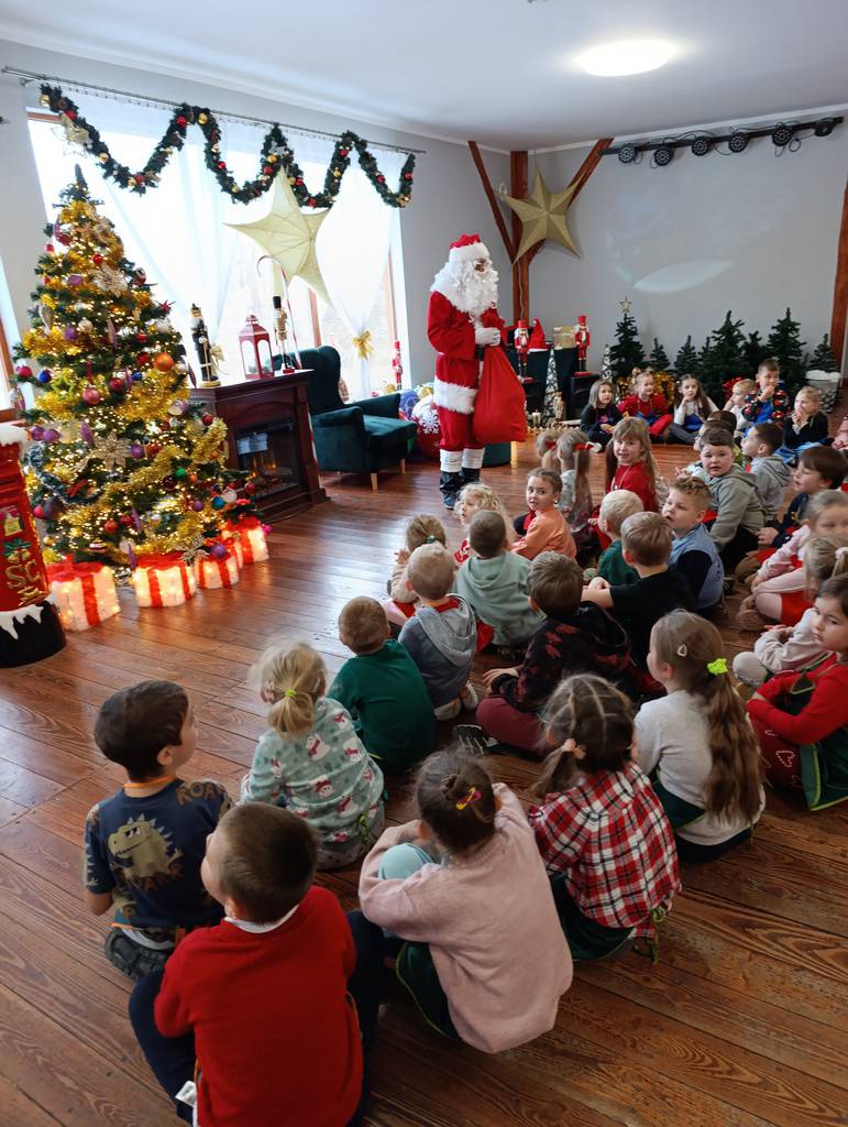 Dwie grupy z Przedszkola w Ciechowie, Smerfy i Żabki wybrały się na wycieczkę w poszukiwaniu Mikołaja. Na miejscu przywitały je Elfy oraz niezastąpiony Mikołaj! Pięknie wystrojona sala, wszechobecna czerwień i świąteczna muzyka, od razu wprawiła wszystkich w świąteczny nastrój.