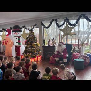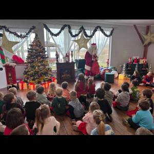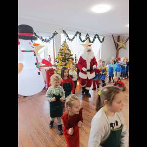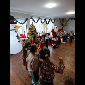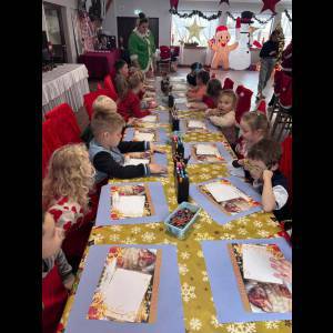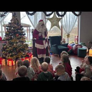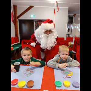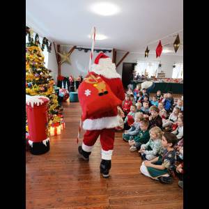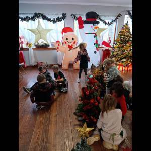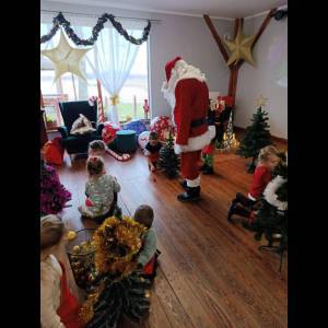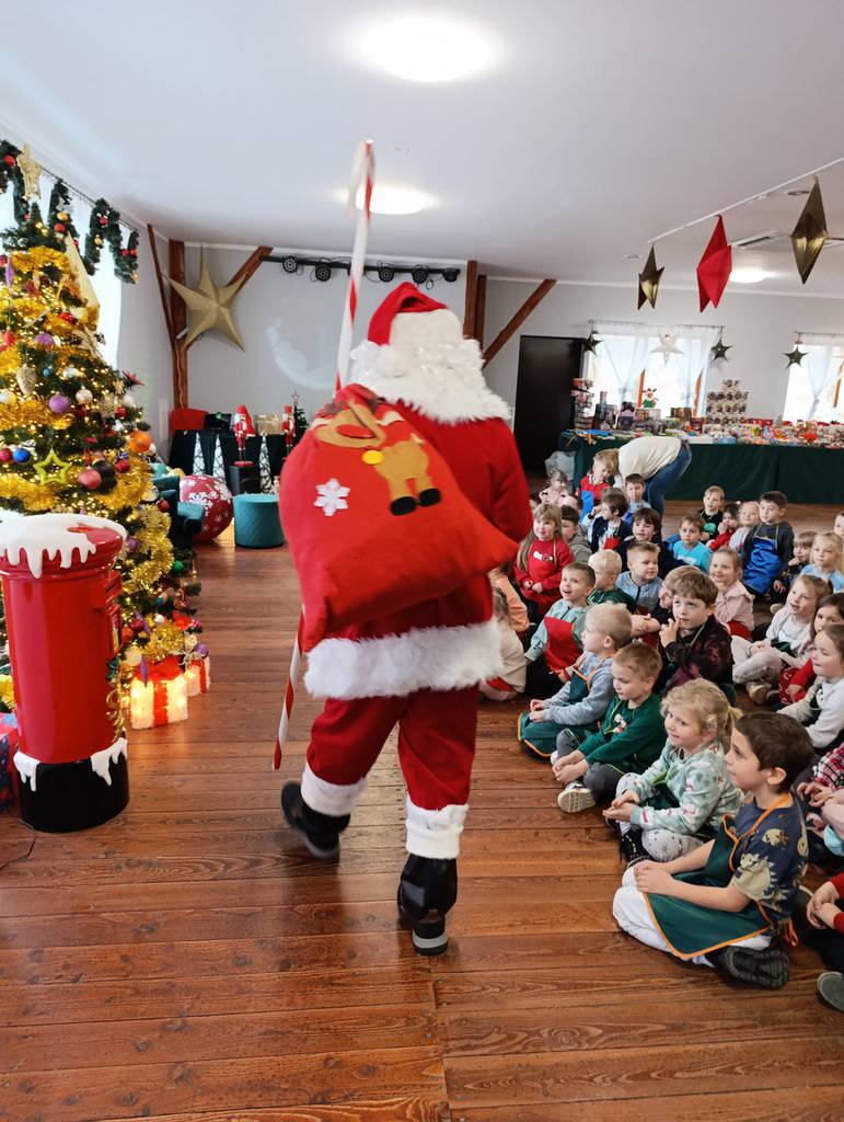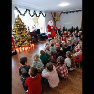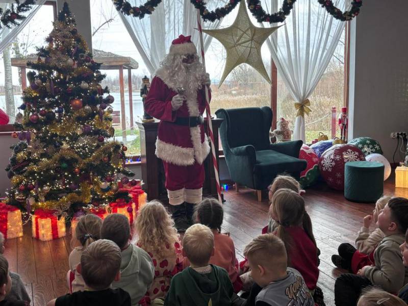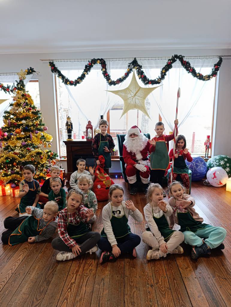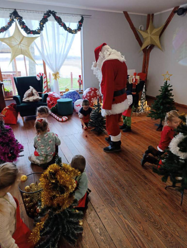 Dwie grupy z Przedszkola w Ciechowie, Smerfy i Żabki wybrały się na wycieczkę w poszukiwaniu Mikołaja. Na miejscu przywitały je Elfy oraz niezastąpiony Mikołaj! Pięknie wystrojona sala, wszechobecna czerwień i świąteczna muzyka, od razu wprawiła wszystkich w świąteczny nastrój.