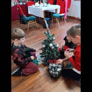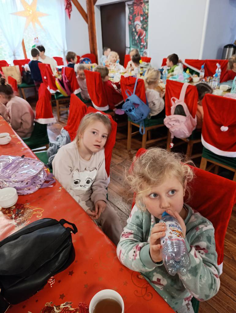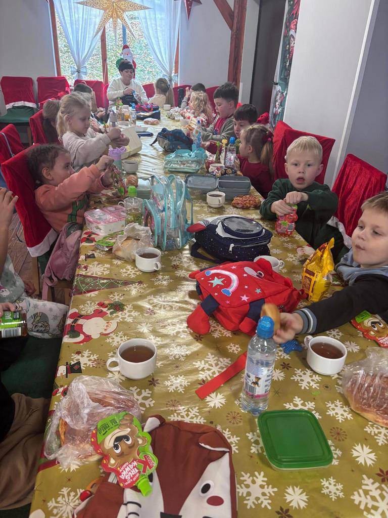 W przerwie dzieci popijały świąteczną herbatkę, a w tle słychać było świąteczne przeboje!