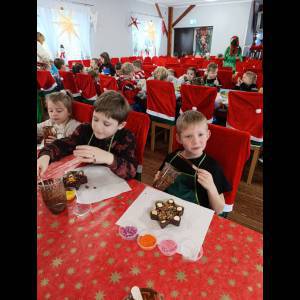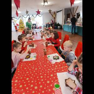 W trakcie warsztatów dzieci ozdabiały drewniane bombki oraz stworzyły czekoladowe przysmaki. Każdy mógł ozdobić tak, jak podpowiadała mu wyobraźnia.