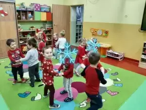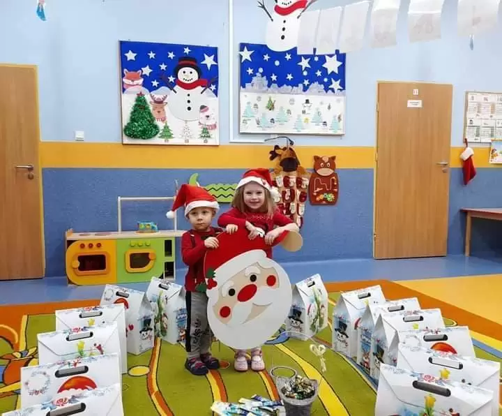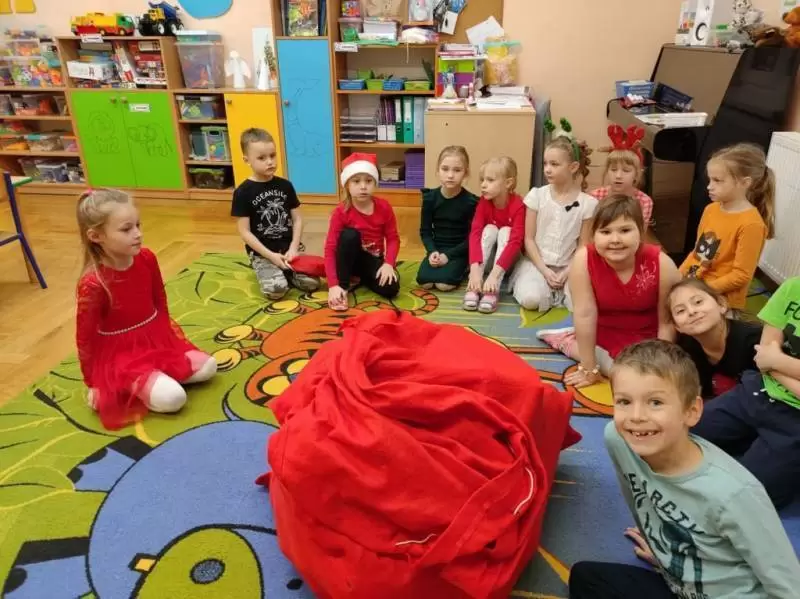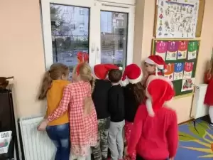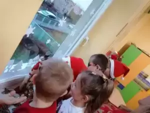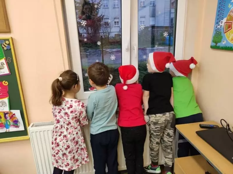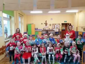 Od samego rana w placówce panowała radość i poruszenie. Przedszkolaki z wielką niecierpliwością oczekiwały przyjścia niezwykłego gościa. Cały czas nasłuchiwały dzwonków. Aby podkreślić wyjątkowy charakter tego wydarzenia wszystkie dzieci były odświętnie ubrane w czerwone mikołajowe czapeczki.