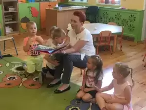 14 czerwca Przedszkole Publiczne odwiedzili wyjątkowi goście. Pierwszym z nich była pani Monika Heba - Wierzbicka, dyrektor Szkoły Podstawowej w Ciechowie, która czytała przedszkolakom fragmenty wybranych książeczek ze szkolnej biblioteki.