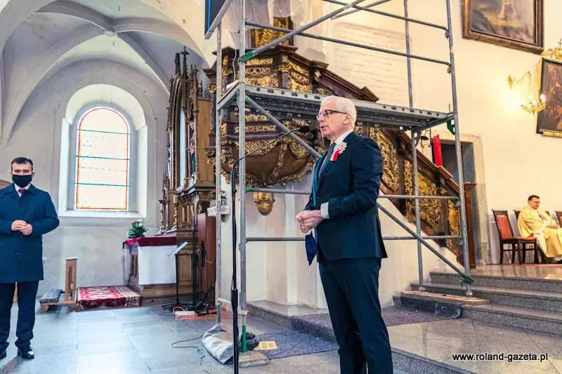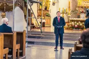 Na zakończenie mszy świętej przyszedł czas na okolicznościowe wystąpienia wojewody Jarosława Obremskiego, burmistrza Adama Rucińskiego i starosty Krzysztofa Szałankiewicza.