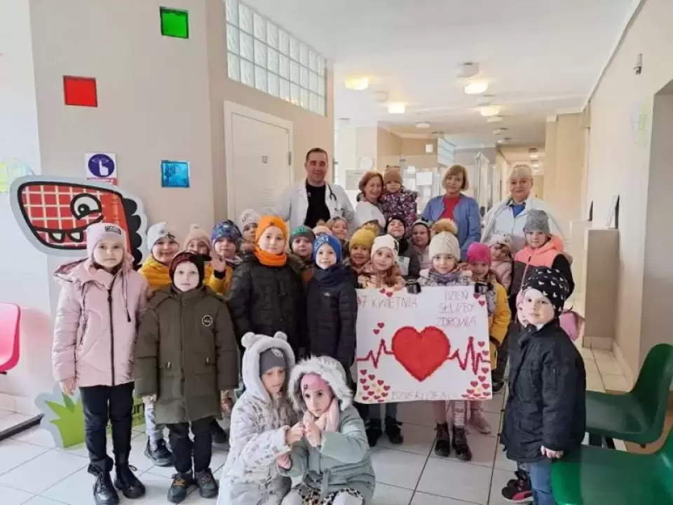 Z okazji Dnia Służby Zdrowia, przedszkolaki złożyły wszystkim pracownikom życzenia oraz przekazały laurkę. Wszystkie dzieci były bardzo zadowolone z tej wizyty, a niektóre z nich zafascynowały się zawodami lekarza i pielęgniarki na tyle, że postanowiły wybrać w przyszłości właśnie taki zawód.