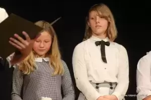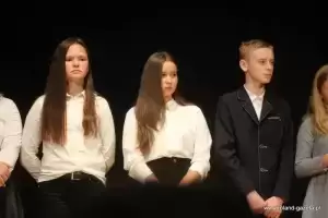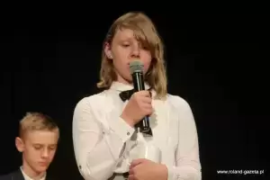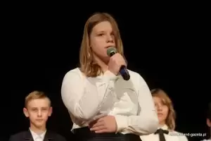 Na zakończenie, na scenie Domu Kultury pani Marianna Galas zaprezentowała swoją poezję, a tuż po niej, uczniowie Zespołu Szkół im. Sybiraków w Rakoszycach przedstawili poruszający program słowno – muzyczny.