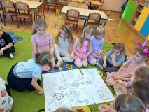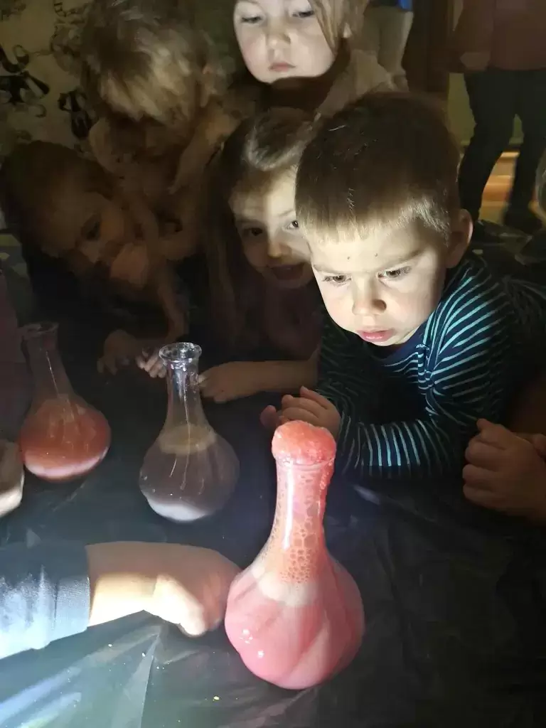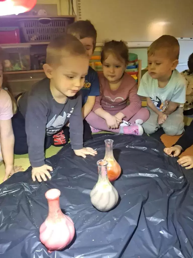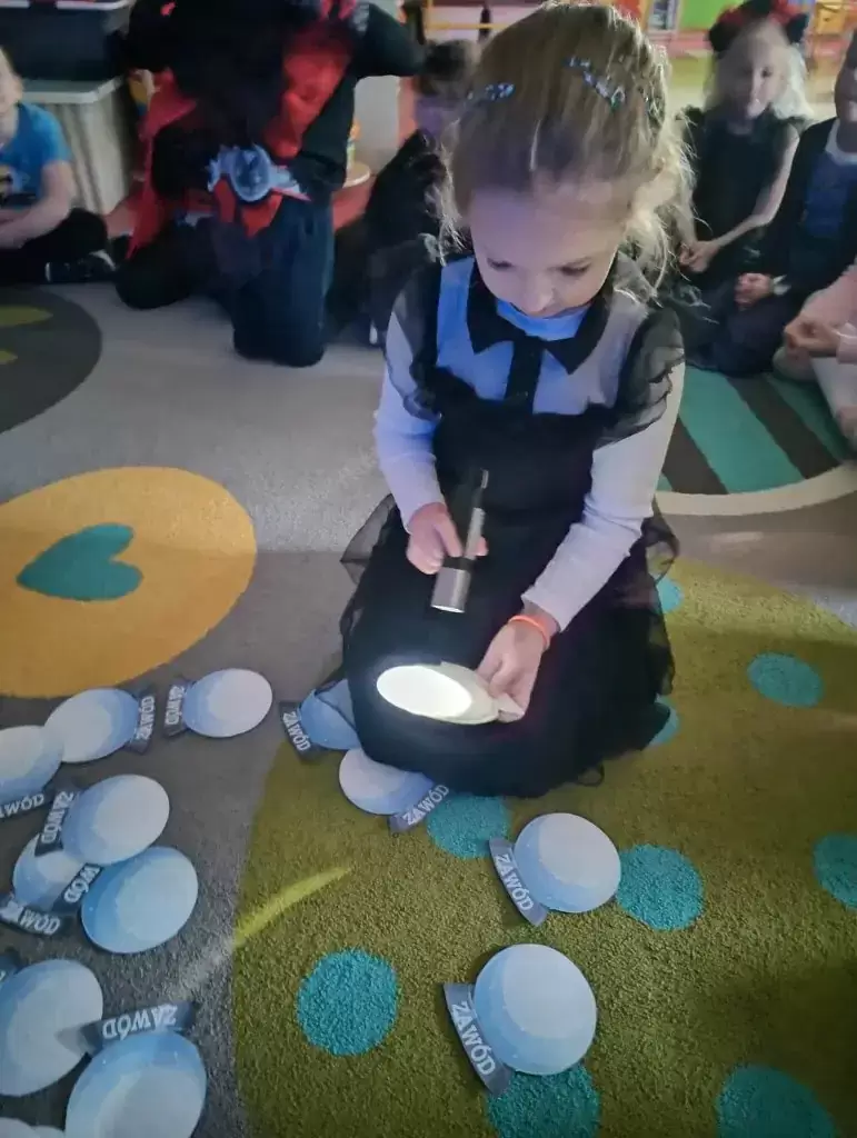 Wszystkie aktywności miały radosny, nie budzący lęku, bezpieczny charakter i pomagały rozwijać dziecięcą wyobraźnię. Nie zabrakło też tańców, piosenek i zabaw ruchowych, które dodatkowo integrowały grupę i wprowadzały wszystkich w świetny nastrój. Dzieci z wielkim zaangażowaniem tworzyły andrzejkowe prace plastyczne, dzięki czemu mogły wyrazić swoją kreatywność i współtworzyć magiczną atmosferę tego dnia.