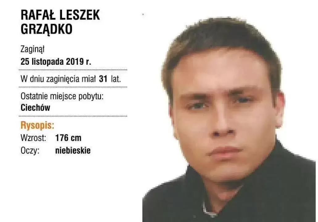 Poszukiwany jest 31-letni Rafał Leszek Grządko, który zaginął 25 listopada 2019 r. w miejscowości Ciechów (gmina Środa Śląska, woj. dolnośląskie).