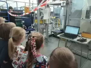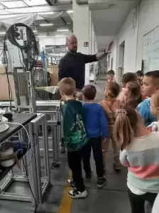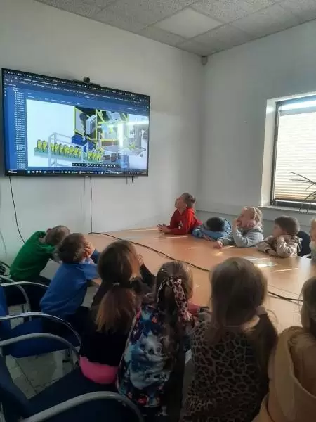 Dzieci zostały oprowadzone po działach firmy z wielkim entuzjazmem. Wizyta w dziale konstrukcji, automatyki, produkcji była dla przedszkolaków zaskakująca. Dzieci zwiedziły halę montażową oraz magazyn, zobaczyły jak wygląda proces projektowania i programowania maszyn.