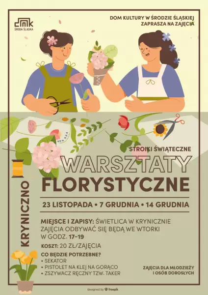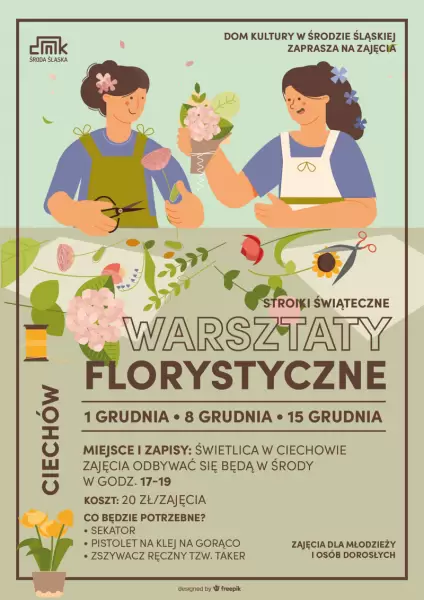 Dom Kultury w Środzie Śląskiej zaprasza na warsztaty florystyczne dla młodzieży i dorosłych.