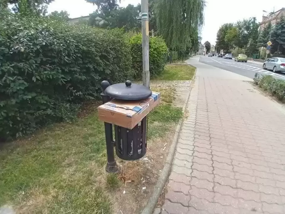 Lenistwo czy bezmyślność? A może swoista dywersja? Duże kartonowe pudełka wciskane do koszy ulicznych to coraz częściej powtarzające się zjawisko na ulicach Środy Śląskiej.