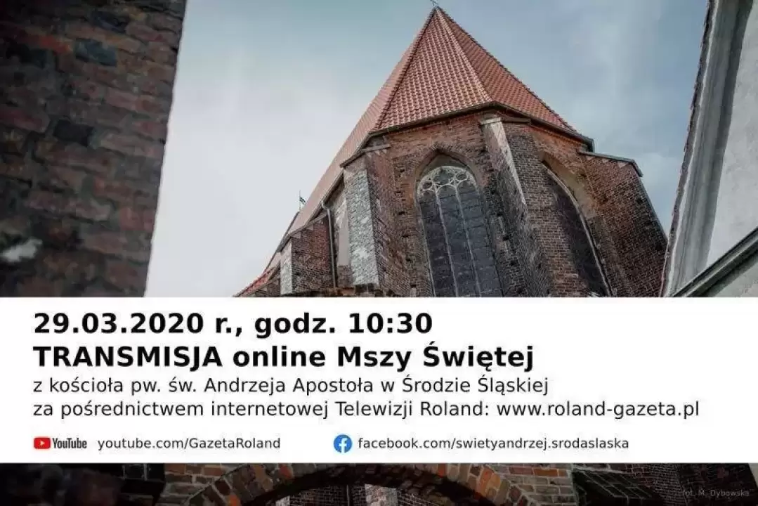 W obecnej, wyjątkowej sytuacji, kiedy w świątyniach może przebywać nie więcej niż 5 osób, przy aprobacie ks. proboszcza oraz dzięki wsparciu radnego Rady Miejskiej w Środzie Śląskiej Leszka Maciejewskiego, będziemy dla Państwa transmitować na żywo niedzielne msze święte z kościoła pw. św. Andrzeja Apostoła w Środzie Śląskiej.