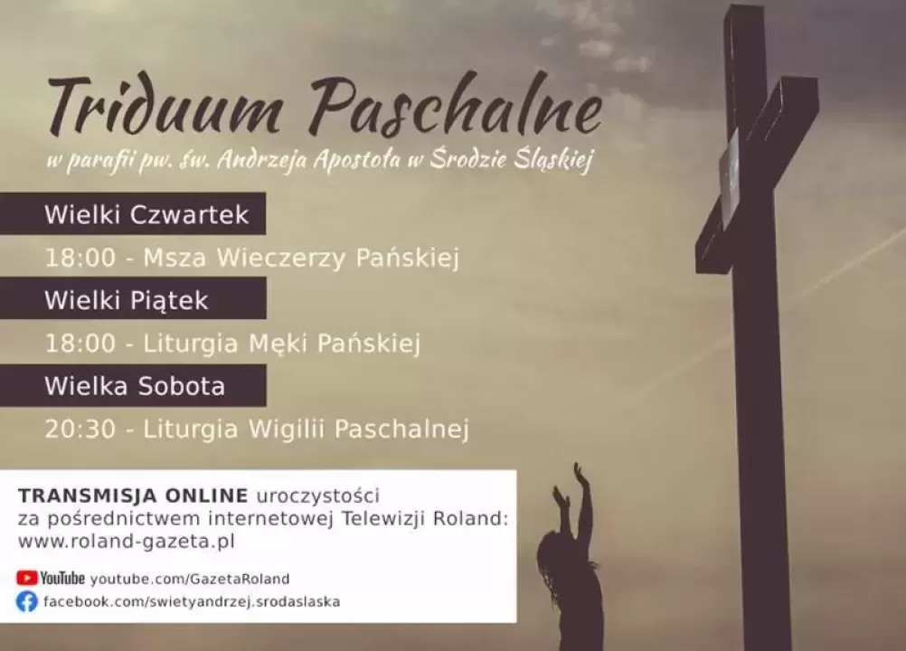 W imieniu parafii oraz ks. proboszcza Wiesława Pindela zachęcamy do łączności modlitewnej za pomocą transmisji online na naszym portalu www.rolanmd-gazeta.pl, którą wsparły finansowo - Maria Zachary i Judyta Partyka-Basa, radne Rady Powiatu w Środzie Śląskiej.