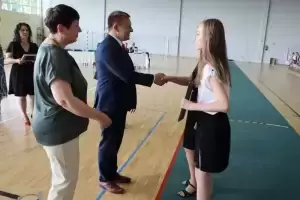 W uroczystościach zakończenia roku szkolnego we wszystkich gminnych placówkach oświatowych wzięli udział przedstawiciele władz średzkiej Gminy. Burmistrz Adam Ruciński odwiedził młodzież w Szkole Podstawowej w Ciechowie i Środzie Śląskiej, gdzie miał okazję pogratulować sukcesów w nauce najlepszym uczniom oraz wręczyć nagrody szkolnym prymusom. – To był dla wszystkich trudny rok, zarówno dla nauczycieli, jak i wszystkich uczniów. Cieszę się, że udało Wam się dotrwać do jego końca i teraz czekają Was zasłużone wakacje – mówił podczas uroczystości włodarz średzkiej Gminy. – Szczególne słowa kieruję do ósmoklasistów. Otwiera się przed Wami nowy rozdział życia, życzę Wam samych sukcesów i nie bójcie się sięgać po najwyższe cele.