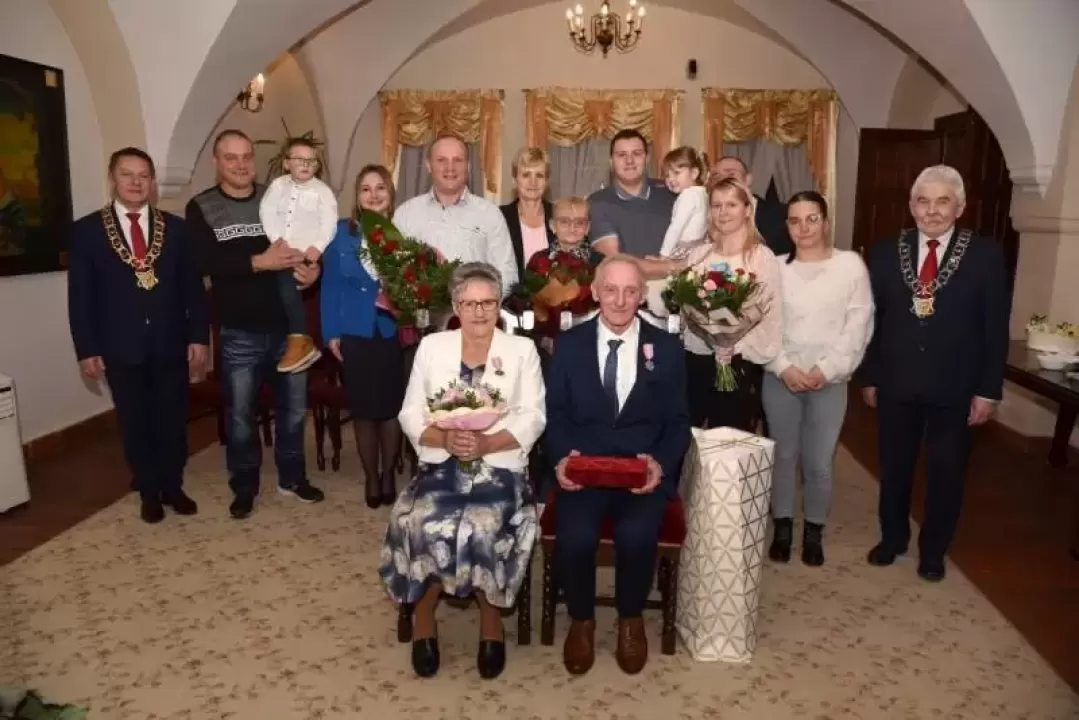 Z tej wyjątkowej okazji małżonkowie uroczyście odebrali z rąk burmistrza Adama Rucińskiego medale za długoletnie pożycie małżeńskie nadane przez prezydenta RP.