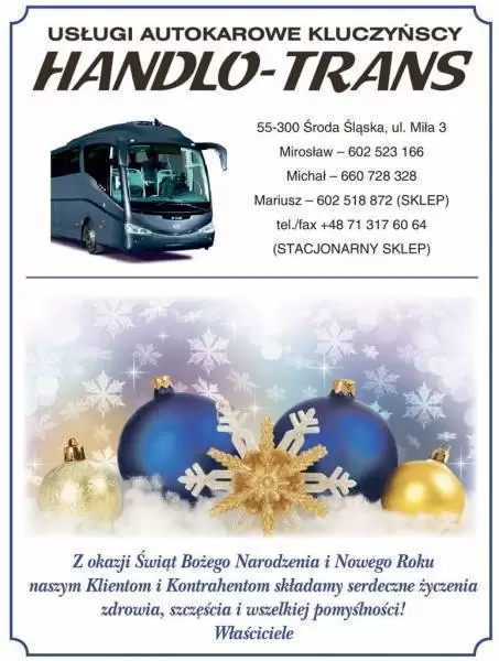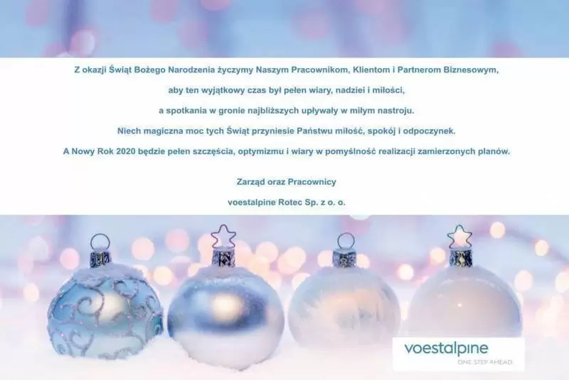 Serdeczne życzenia z okazji Świąt Bożego Narodzenia oraz Nowego Roku składają Państwu dyrektorzy i właściciele firm: Basf, Vibracoustic, Gotec, Voestalpine, Xeos, Cesbud, Hydro-Tech, Intermarche, Arex - Meble, Materiały Ogólnobudowlane - Anna Leginowicz, Handlo-Trans, Bank Spółdzielczy, Spółdzielnia Mieszkaniowa, Produkcja siatki - Roman Chmura, Komnet, Eldisy.
