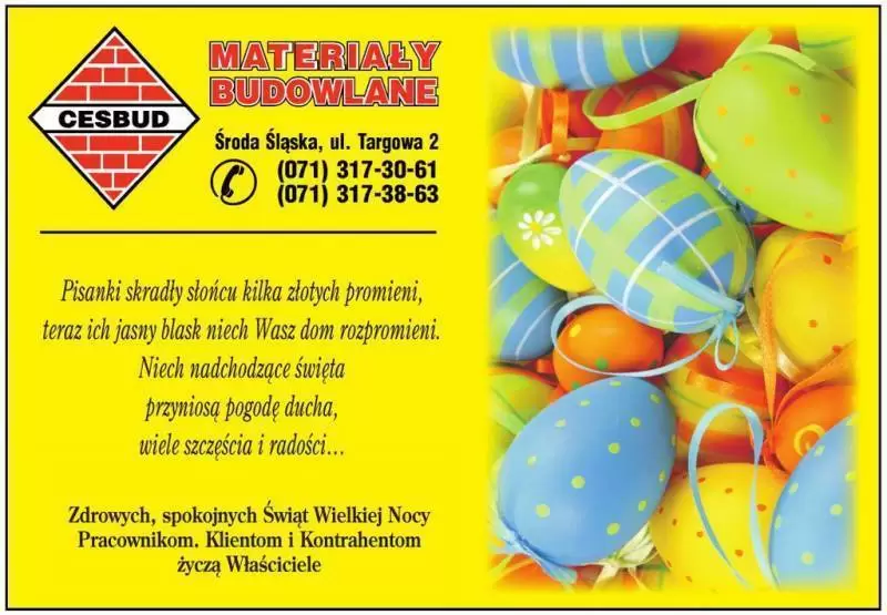 Z okazji Świąt Wielkiej Nocy serdeczne życzenia składają Państwu firmy z terenu gminy Środa Śląska!