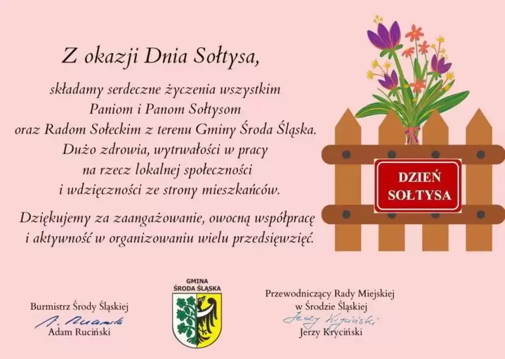 Życzenia z okazji Dnia Sołtysa od Burmistrza i Przewodniczącego Rady Miejskiej