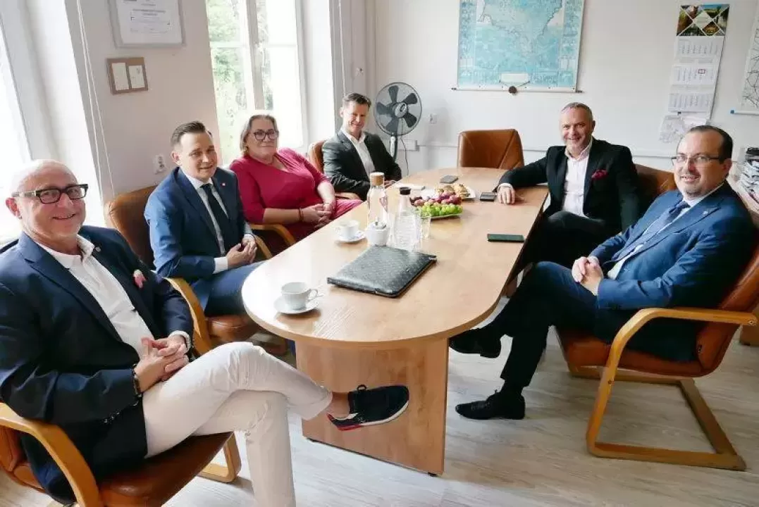 Wojewoda dolnośląski Maciej Awiżeń i poseł Michał Jaros byli dzisiaj gośćmi starosty średzkiego Sebastiana Burdzy.