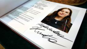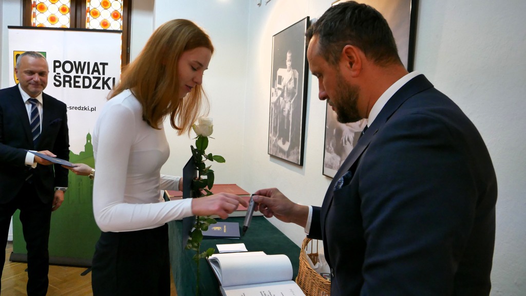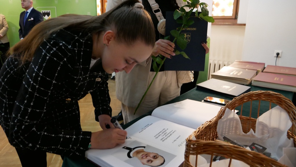 Stypendyści tradycyjnie wpisali się do Złotej Księgi Stypendystów Powiatu Średzkiego, która liczy już ponad 300 nazwisk.