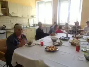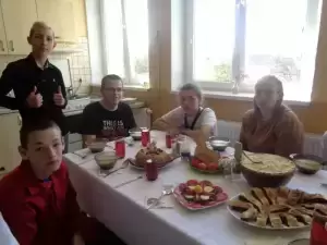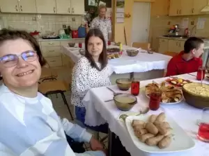 Uroczysty posiłek rozpoczęto modlitwą i życzeniami, po czym wszyscy zasiedli do świątecznego śniadania. W miłej atmosferze opowiadano o zwyczajach Wielkiej Nocy w swoich rodzinnych domach.