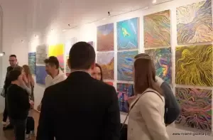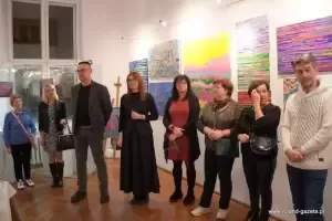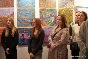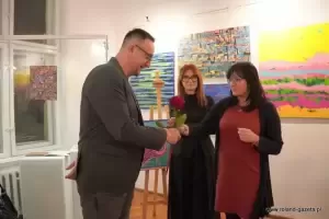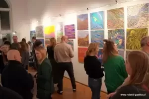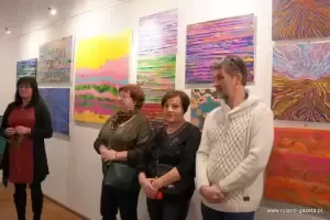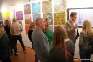 - Szumy to jest taki dar, który dostałem od Pana Boga w 2017 roku. Szumy, to nic innego jak piski, dźwięki w uszach. Jest to podobno choroba cywilizacyjna i jako projektant, jako artysta postanowiłem to uplastycznić, uwidocznić i przerzucić w jakiekolwiek formie na płótno, na kartkę, na szkicowniki, na projekty graficzne, na fotografię, której tutaj notabene nie ma, ale można to wszystko zobaczyć na moich social mediach - wyjaśniał Jacek Kata. - Plastyka, kolor, lina, barwa, kompozycja to nic innego jak moja ucieczka od tych szumów i forma terapii, zapomnienia o nich. Szumy towarzyszą mi nieprzerwanie, non stop, 24 godziny na dobę. Czasami jest lepiej, czasami jest gorzej. Wszystko to jest podyktowane pogodą, ciśnieniem, pracą... Musicie też popatrzeć na to, jak coś, co jest opozycją do tego co mam w środku. Kolor, to jest dla mnie wybawienie. To jest radość, to jest odskocznia. Kolor to jest moja tabletka. Forma, której szukam, linie itd., to jest stan, który ciągle się zmienia i ewaluuje dlatego są to SzuMY - MY jako całość, jako symbioza - mówił autor i podkreślił, że ciągłe szumy nie są dla niego przekleństwem, lecz darem.