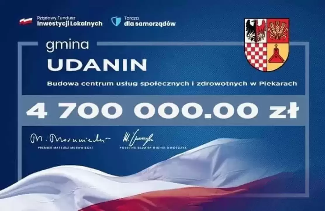4,7 mln zł dla Gminy Udanin z Rządowego Fundusz Inwestycji Lokalnych