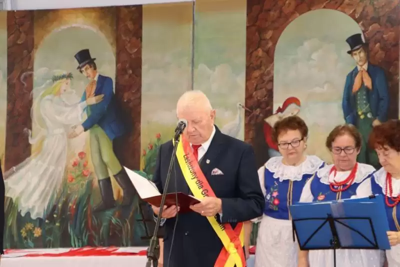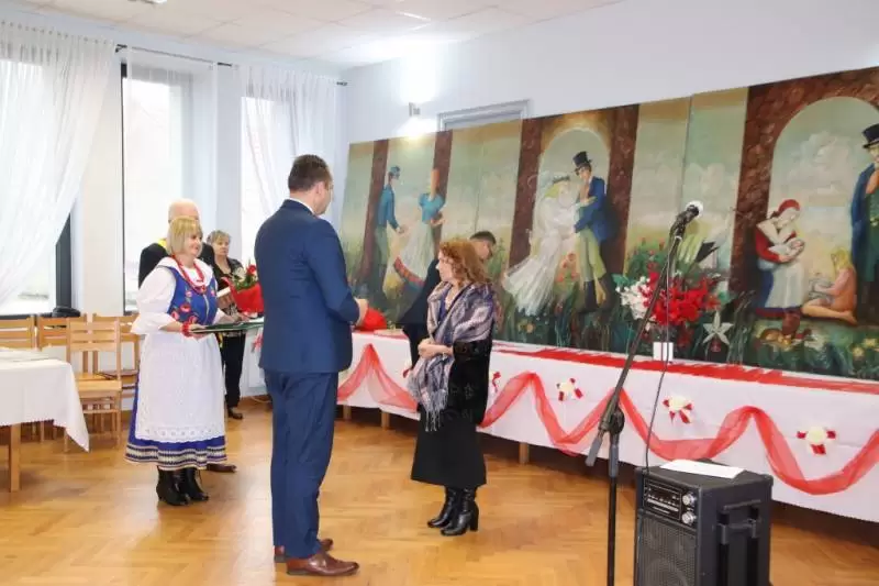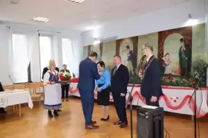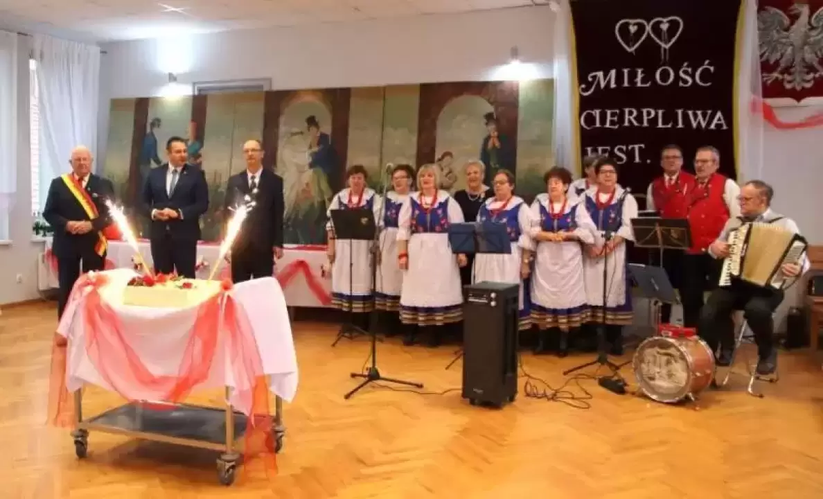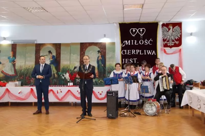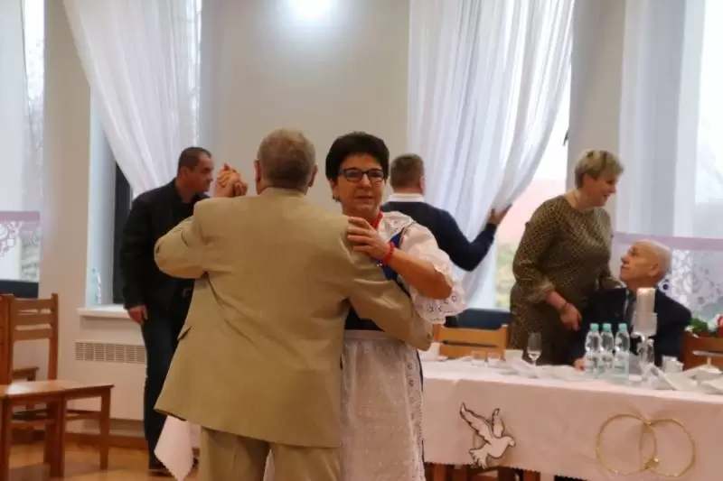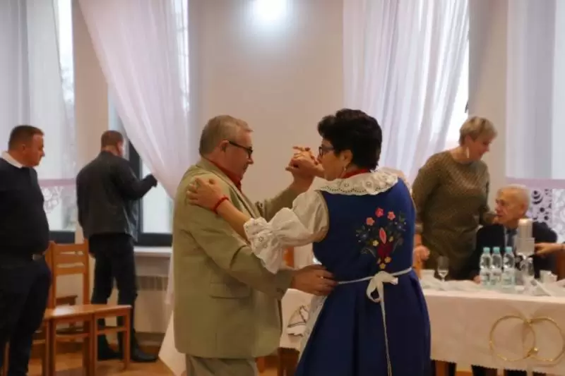 Po tej części uroczystości wiceprzewodniczący Rady Gminy wzniósł toast za pomyślność i zdrowie Jubilatów, a przybyli goście zaśpiewali Jubilatom 100 lat. Zespół Cicha Woda zaprezentował swój specjalnie przygotowany na tę okazję program, a Jubilaci poczęstowani zostali okolicznościowym tortem.