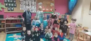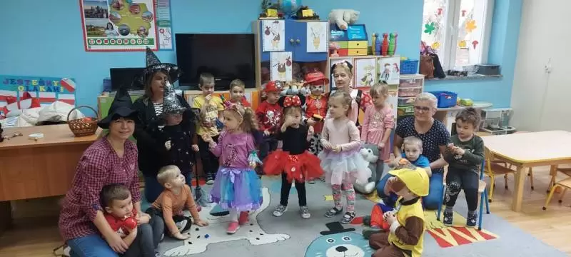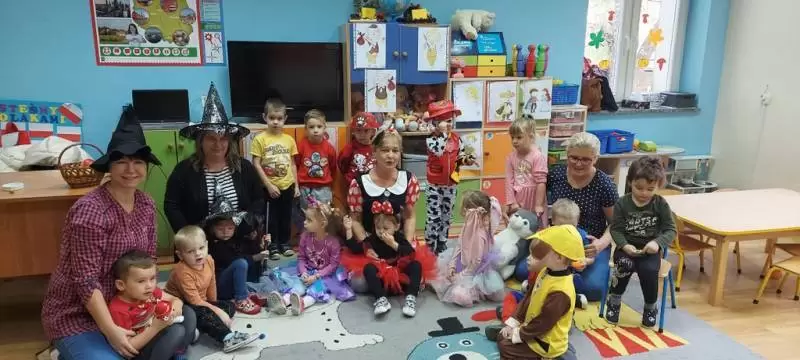 Dzień postaci z bajek w Przedszkolu Samorządowym w Ujeździe Górnym rozpoczął się barwną prezentacją oryginalnych strojów i wesołą zabawą.