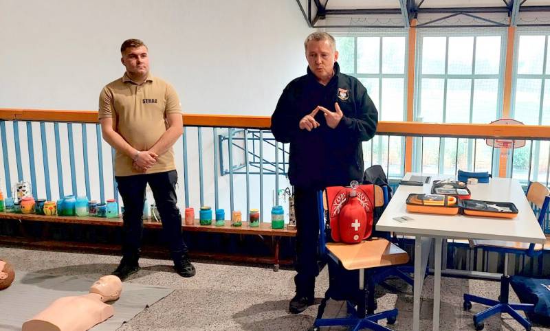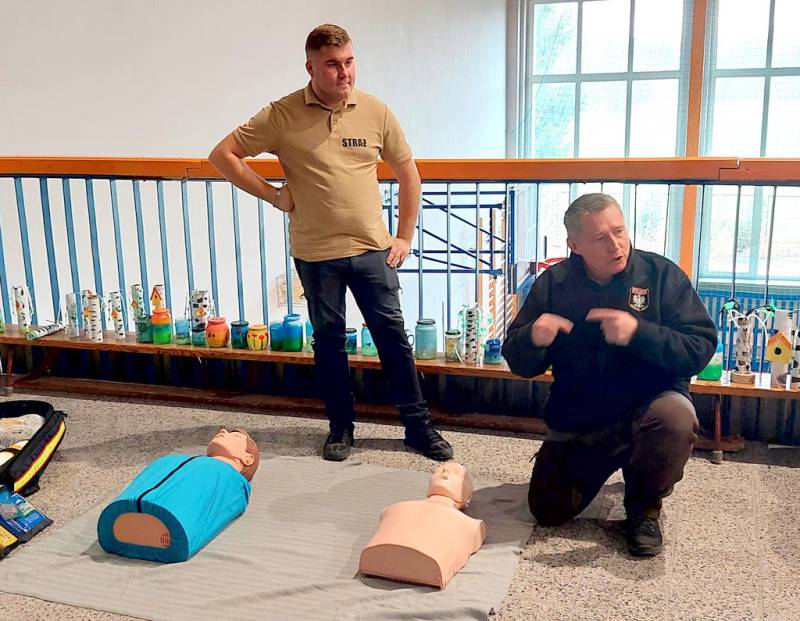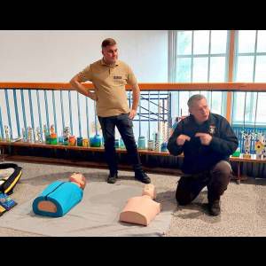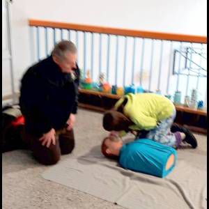 Dlatego do szkoły zaproszono wyjątkowych instruktorów – druhów z OSP Lusina, pana Bogdana Wilczaka oraz pana Jakuba Gnieckiego. Dzięki ich wiedzy i doświadczeniu, czwartoklasiści przeszli profesjonalne szkolenie z pierwszej pomocy przedmedycznej.