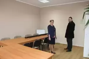 Biuro na piętrze zostało odświeżone i przekształcone w salę konferencyjną, w której będą się odbywać liczne szkolenia i kursy organizowane przez GOPS.
