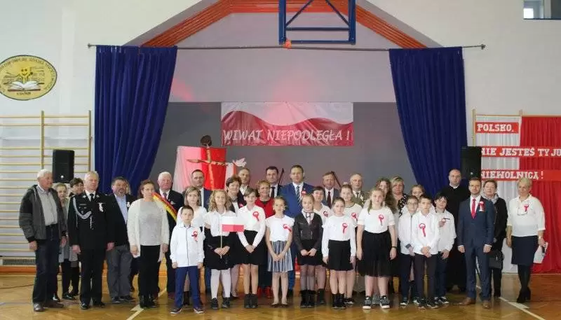 Rozpoczęto hymnem narodowym, następnie Wójt w swoim przemówieniu podkreślił, że „udział w dzisiejszej uroczystości jest potwierdzeniem wielkiego szacunku i wdzięczności wobec Patriotów, którzy walczyli o wolną i niepodległą Ojczyznę. Jest to wyraz wielkiego uznania i wdzięczności wobec Polaków, którzy w walce poświęcili to co jest najcenniejsze dla każdego człowieka - oddali swoje zdrowie i życie z miłości do kraju. Dzięki tej ofierze złożonej przez nich, mamy własne terytorium, mamy godło, mamy biało czerwoną flagę, mamy narodowy hymn, oraz instytucje, w których mówimy językiem polskim.”