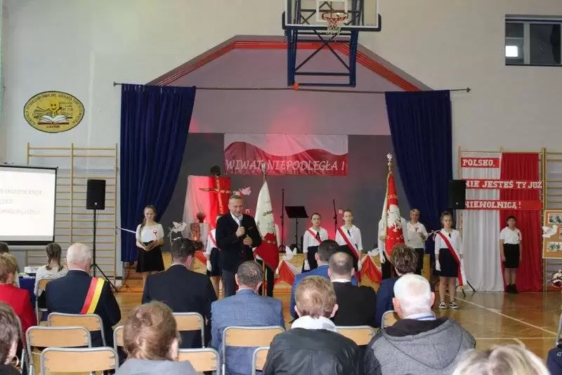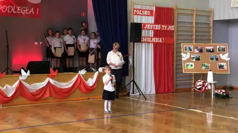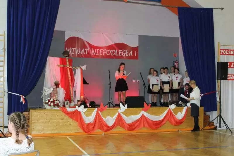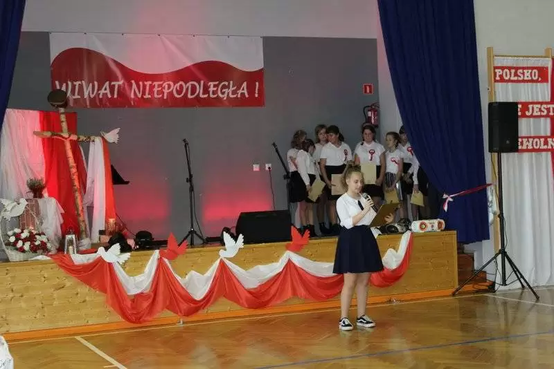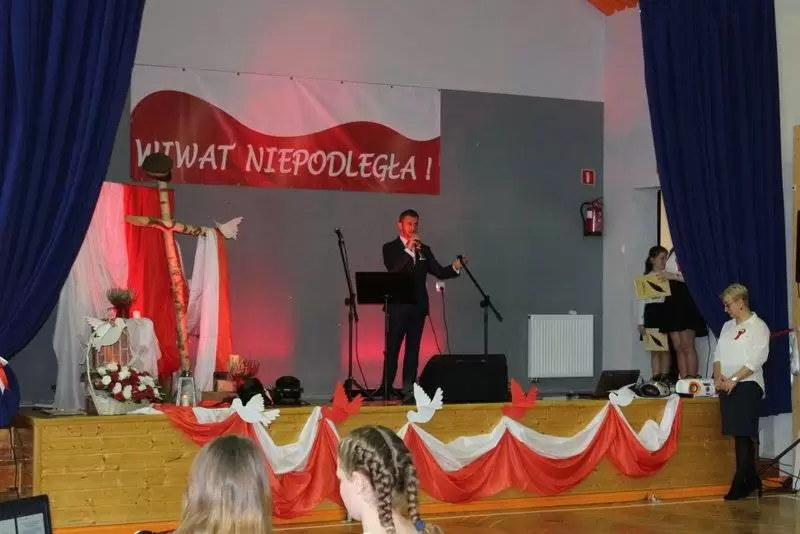 Po przemówieniach zaprezentowano patriotyczny montaż słowno-muzyczny wykonany przez uczniów oraz wokalistę Marcina Malinowskiego. Wspólnie odśpiewano przepiękne pieśni patriotyczne.