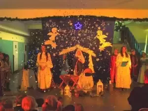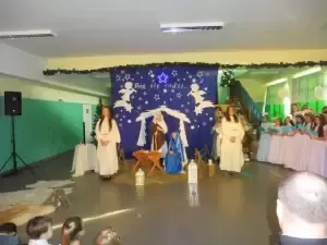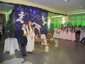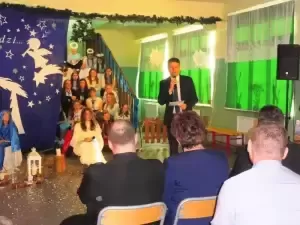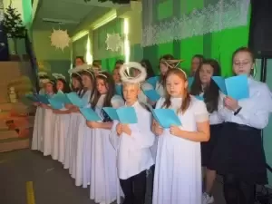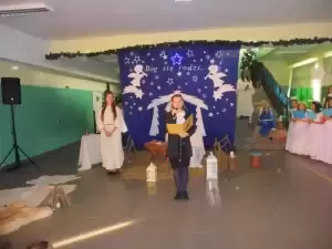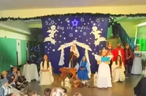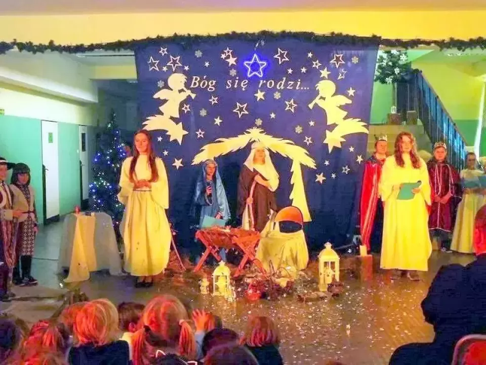 Dzieci podczas jasełek w zachwycający sposób przedstawiły fakt Bożego Narodzenia. Wielkie zaangażowanie młodych aktorów, ciekawa scenografia i stroje, przygotowane efekty świetlne i muzyczne oraz piękny śpiew szkolnego chórku sprawiły, że po zakończeniu występów posypały się gromkie brawa na stojąco. "Jeśli będziesz mnie szukał w Boże Narodzenie, nie wypatruj specjalnej gwiazdy… Nie szukaj mnie w sklepach, ozdobach, dekoracjach… Przyjdę do Ciebie, jeśli zrobisz dla mnie miejsce… A znajdziesz mnie w ciszy, będę szeptał Twoje imię. "- recytowali uczniowie, przypominając wszystkim sens i istotę świąt. Słuchając i patrząc na występy u wielu z nas, pojawiła się głęboka refleksja i ukryta łezka na twarzy.