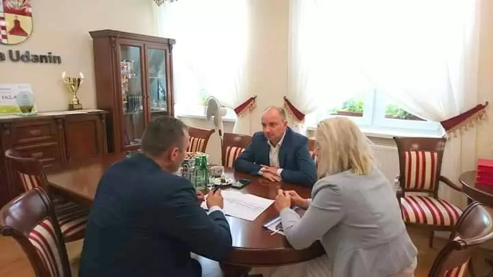 Wójt gminy Udanin Wojciech Płaziuk i Tymoteusz Myrda, Członek Zarządu Województwa Dolnośląskiego, spotkali się dziś w siedzibie Urzędu Gminy Udanin.